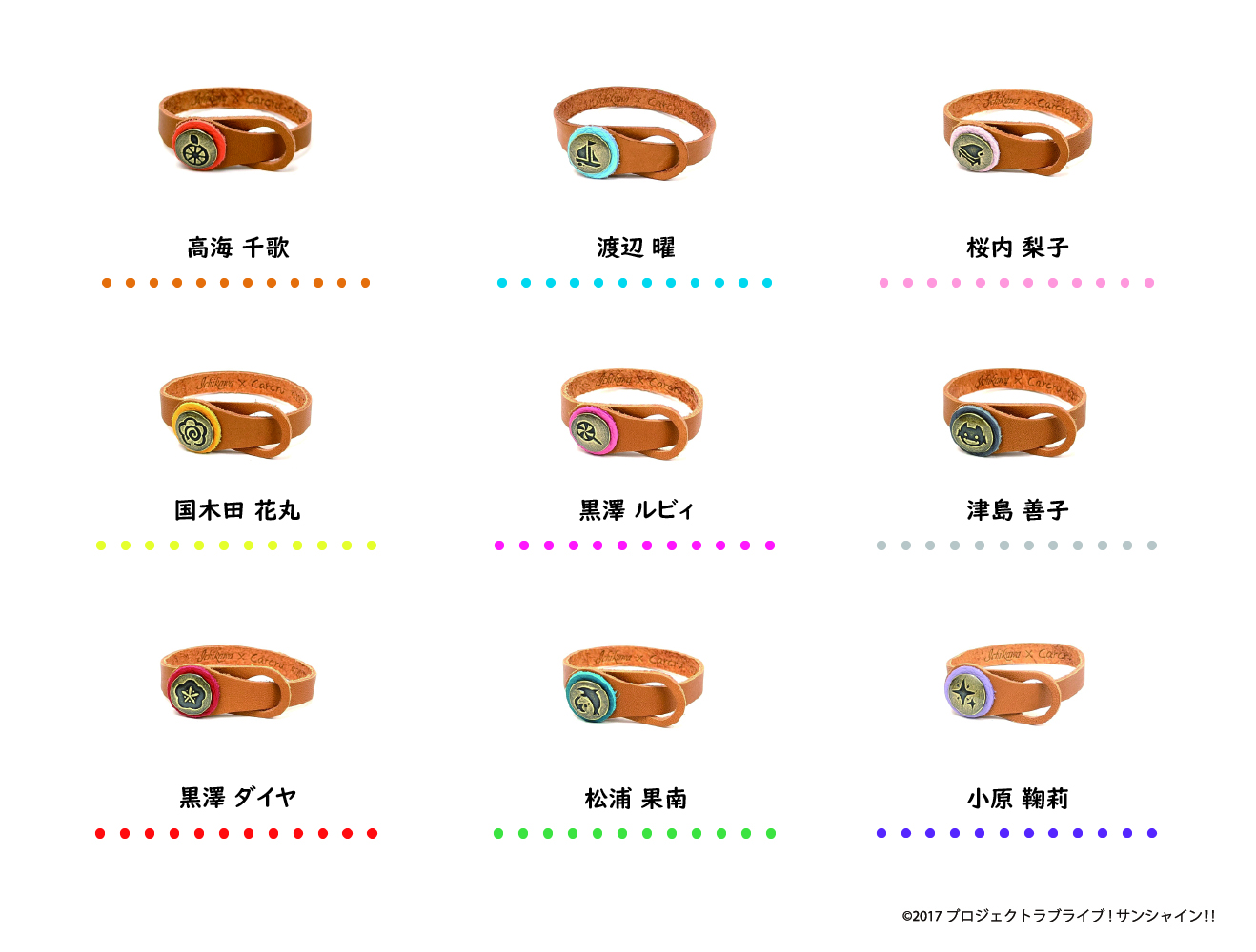 ・各メンバーカラーイメージの革をワンポイントアクセントとして使用。