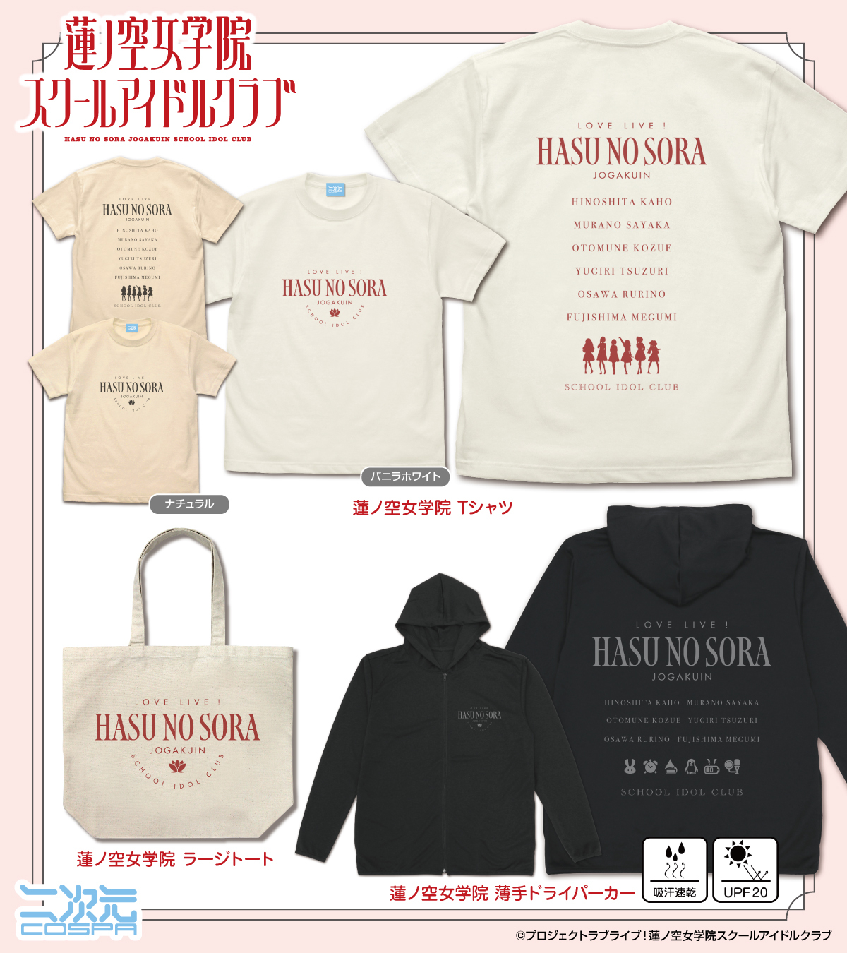 『蓮ノ空女学院スクールアイドルクラブ』メンバーたちの応援にピッタリな「Tシャツ」など新グッズが二次元コスパから登場!
