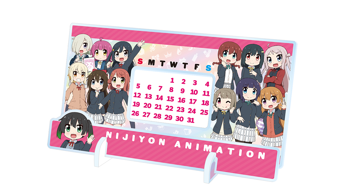 高咲 侑、上原 歩夢、中須 かすみ、桜坂 しずく、朝香 果林、宮下 愛、近江 彼方、優木 せつ菜、エマ・ヴェルデ、天王寺 璃奈、三船 栞子、ミア・テイラー、鐘 嵐珠のイラストを卓上アクリル万年カレンダーに仕上げました。