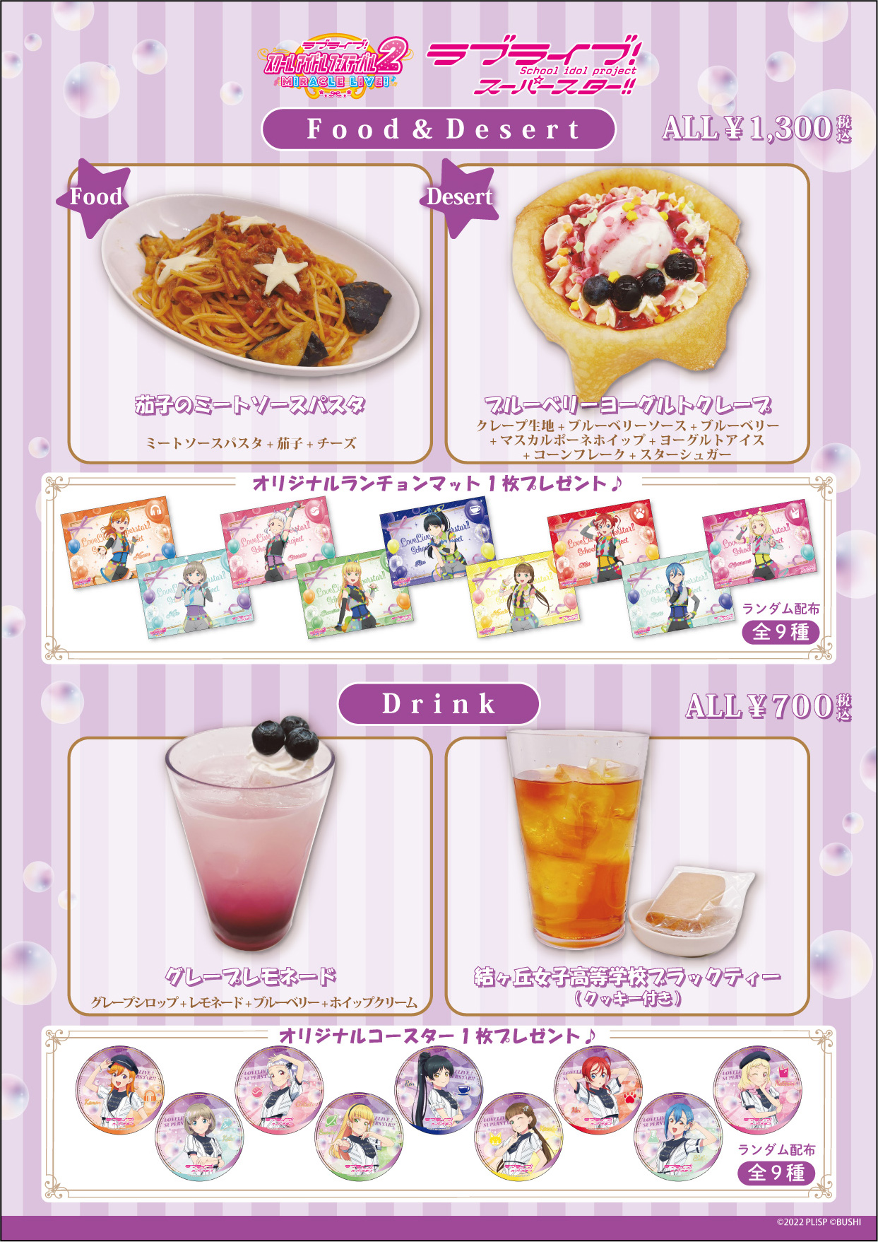 『THEキャラCAFÉ心斎橋OPA店×ラブライブ!シリーズ』では、各グループとのコラボフード・デザート・ドリンクをお楽しみいただけます!