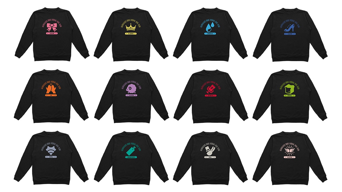 名前とメンバーアイコンをトレーナーに仕上げました。