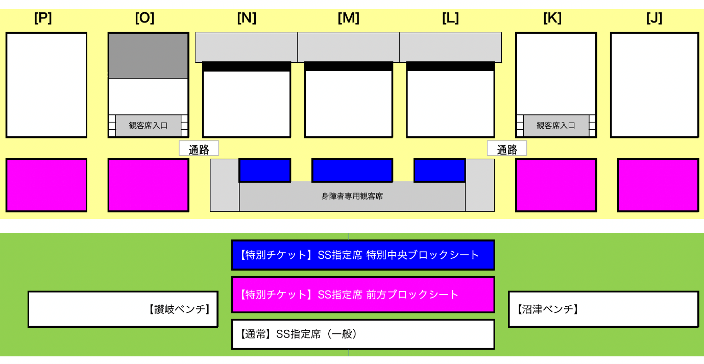 今シーズンよりJ~Pブロックは全席指定席となっております。