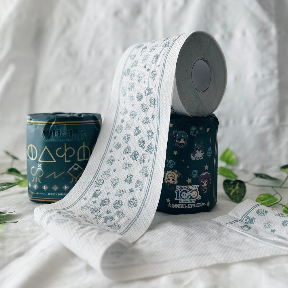 新作の返礼品は、沼津市でも人気の高い返礼品のトイレットペーパーにミニキャラをデザインに施したオリジナル返礼品。