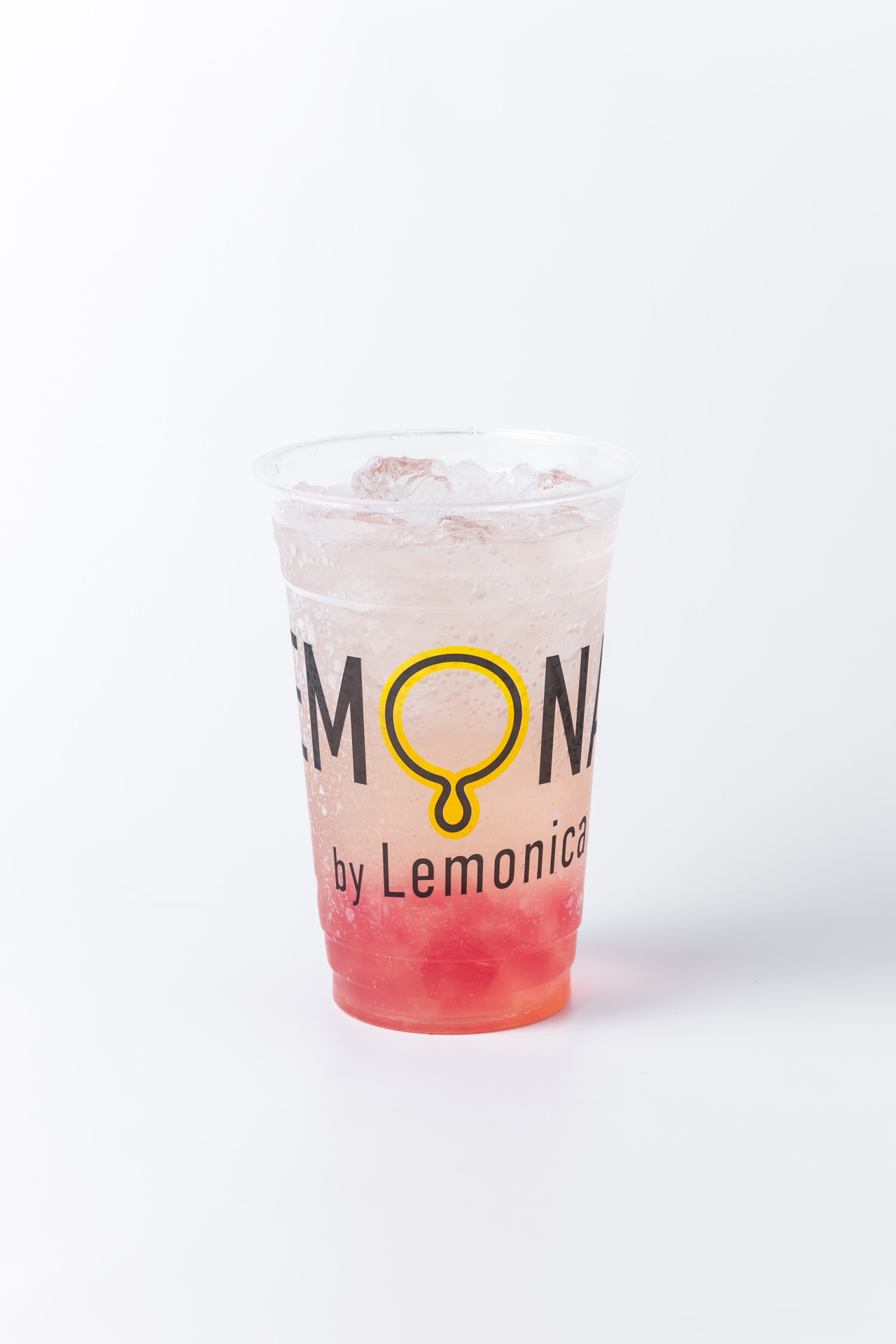 キラキラと輝く桃のジュレと桜の香りのチェリーレモネードが2層に重なる華やかで甘酸っぱいレモネード