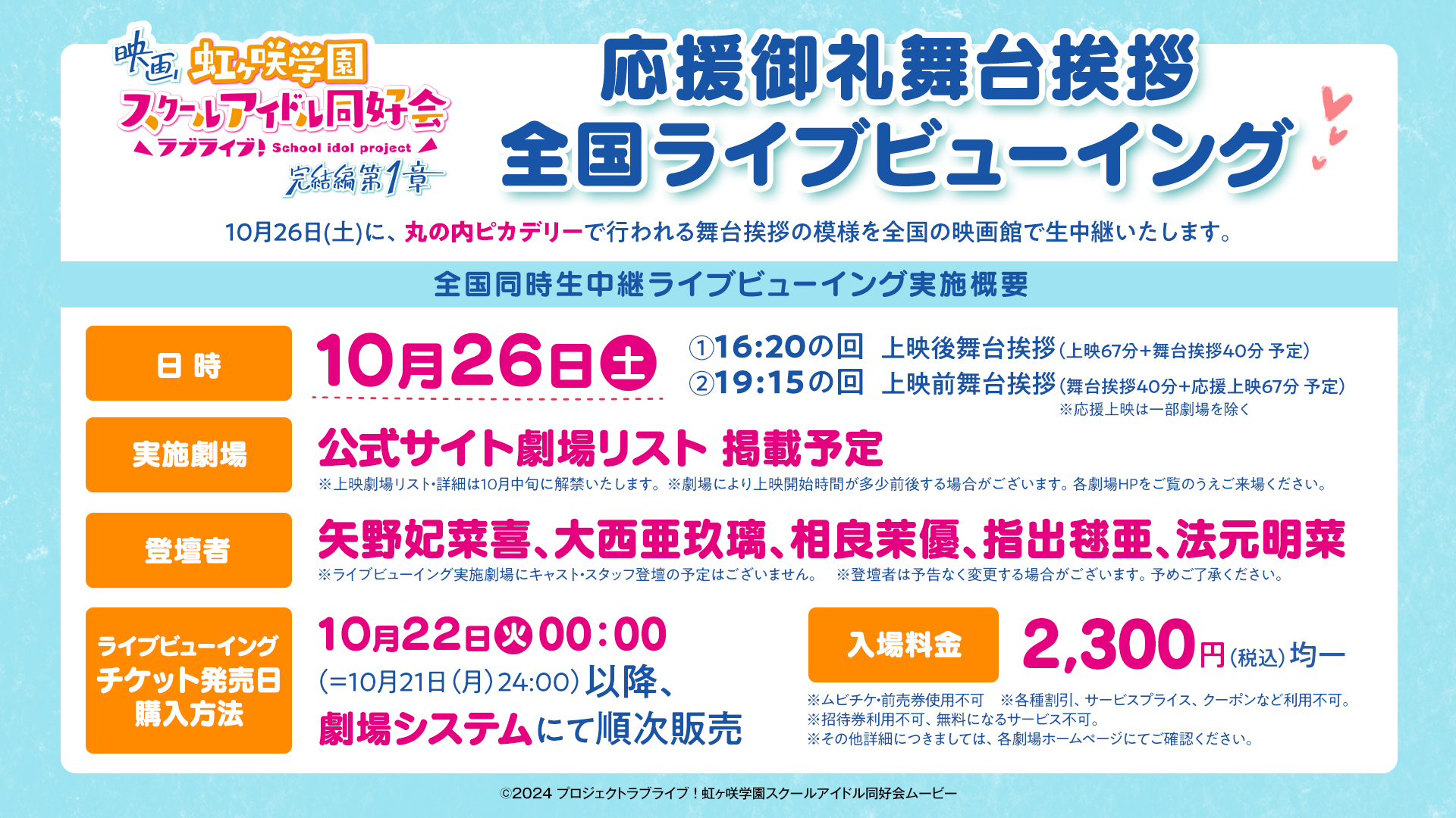 10月26日(土)に行われる応援舞台挨拶のライブビューイング劇場のチケットが、本日より順次発売中!