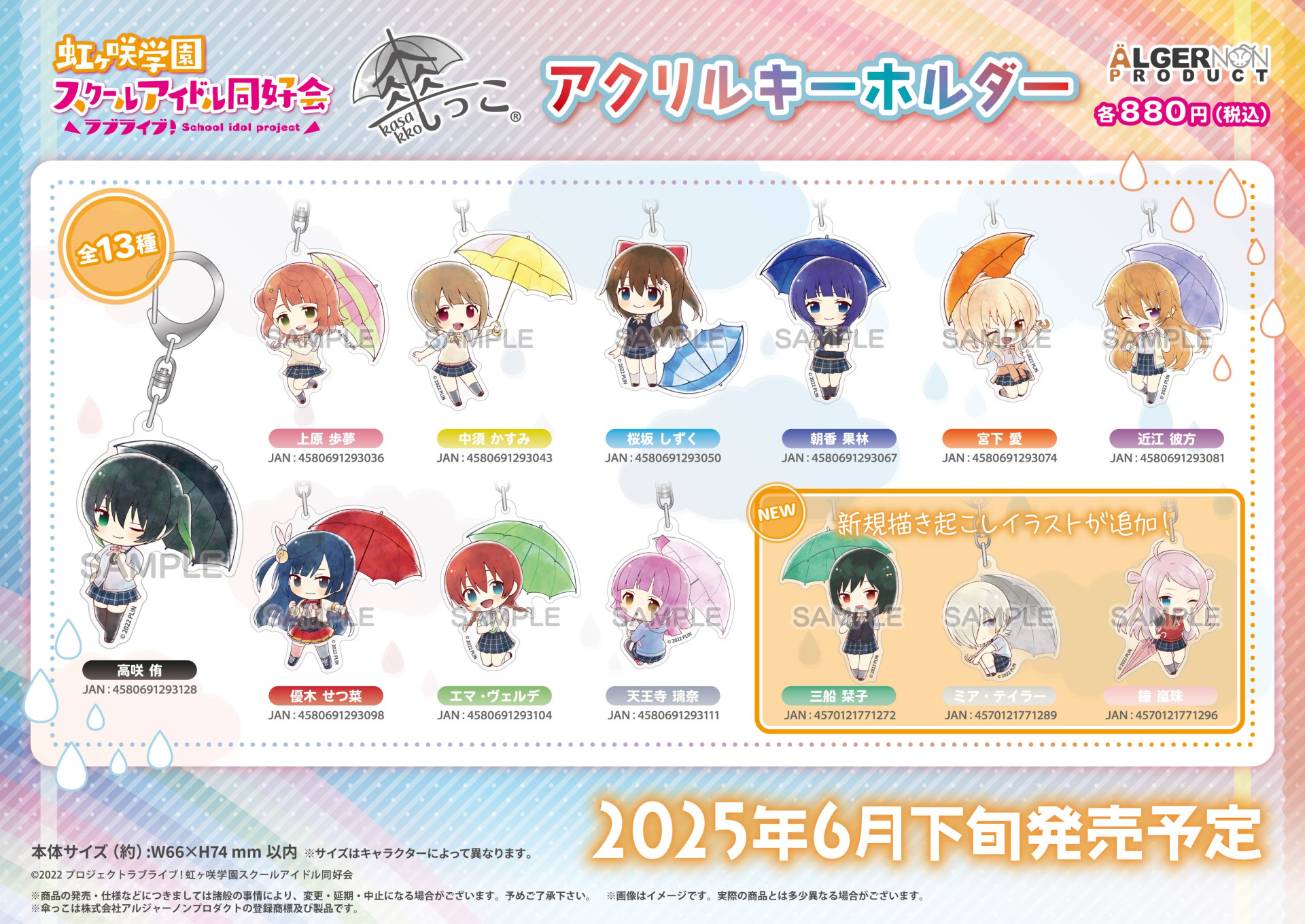 また、3名の新規描き起こしイラストが追加され、『ラブライブ!虹ヶ咲学園スクールアイドル同好会』傘っこアクリルキーホルダーの再販も決定いたしました!