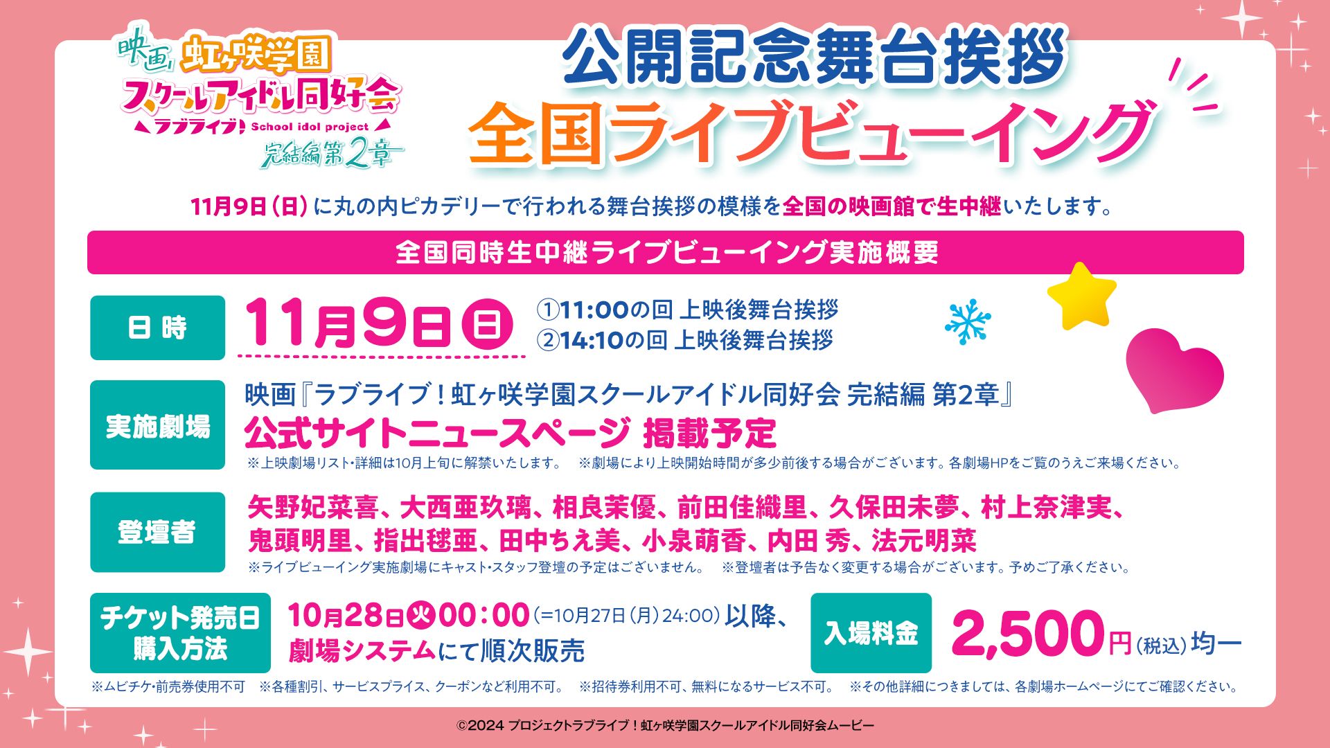 公開初週11月9日(日)実施のキャスト12名登壇の公開記念舞台挨拶全国ライブビューイングチケットは10月28日(火)より順次発売となります!約 50 分間の豪華舞台挨拶の模様を、全国の映画館でお楽しみください!