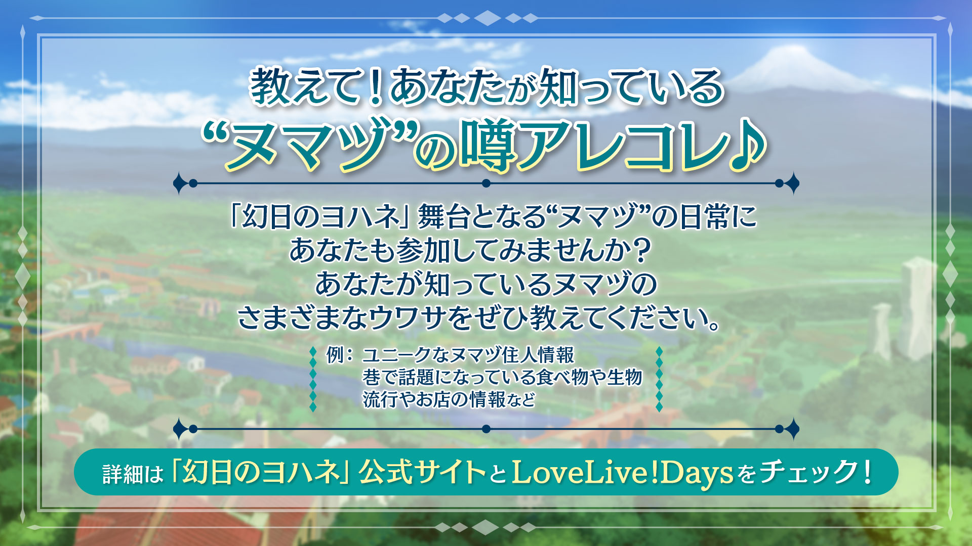 あなたの考える“ヌマヅ”の住人情報や、“ヌマヅ”にまつわる裏話をぜひ教えてください。
