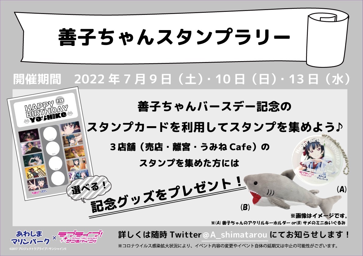 ・最初に利用した店で善子ちゃんバースデー記念スタンプカードをスタンプ押印後受取、残りのお店を利用して、3カ所のスタンプを集める