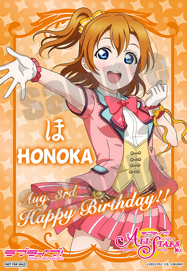 8月3日のµ'sメンバー「高坂穂乃果」のバースデーを記念して、通販サイト【PremiumStore.jp(プレミアムストア)】にて、8月3日(水)17時より対象商品をご購入いただいた方へバースデーブロマイドを付属いたします!