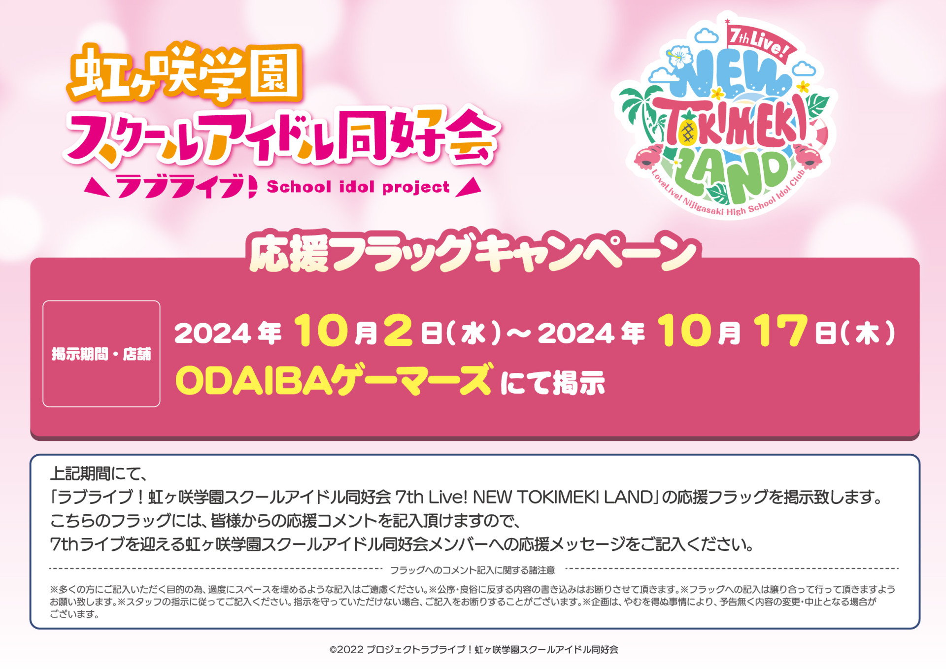 「ラブライブ!虹ヶ咲学園スクールアイドル同好会 7th Live! NEW TOKIMEKI LAND」応援フラッグキャンペーンのお知らせ