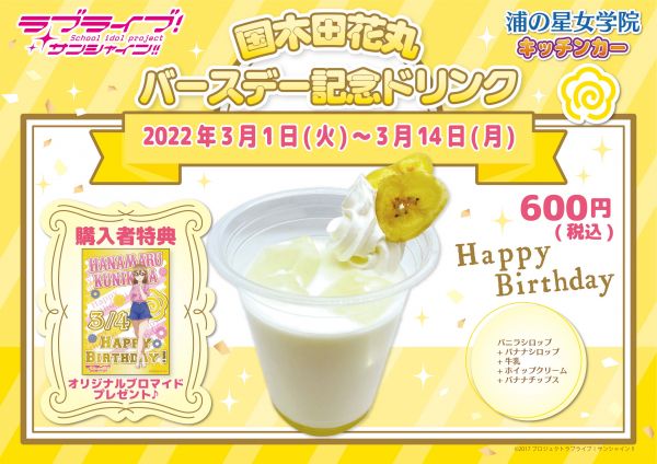 浦の星女学院キッチンカーよりバースデー記念ドリンク販売のお知らせ