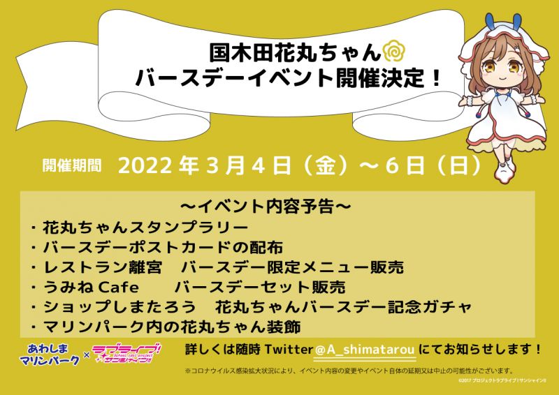 あわしまマリンパークにて、国木田花丸ちゃんバースデーイベント開催!