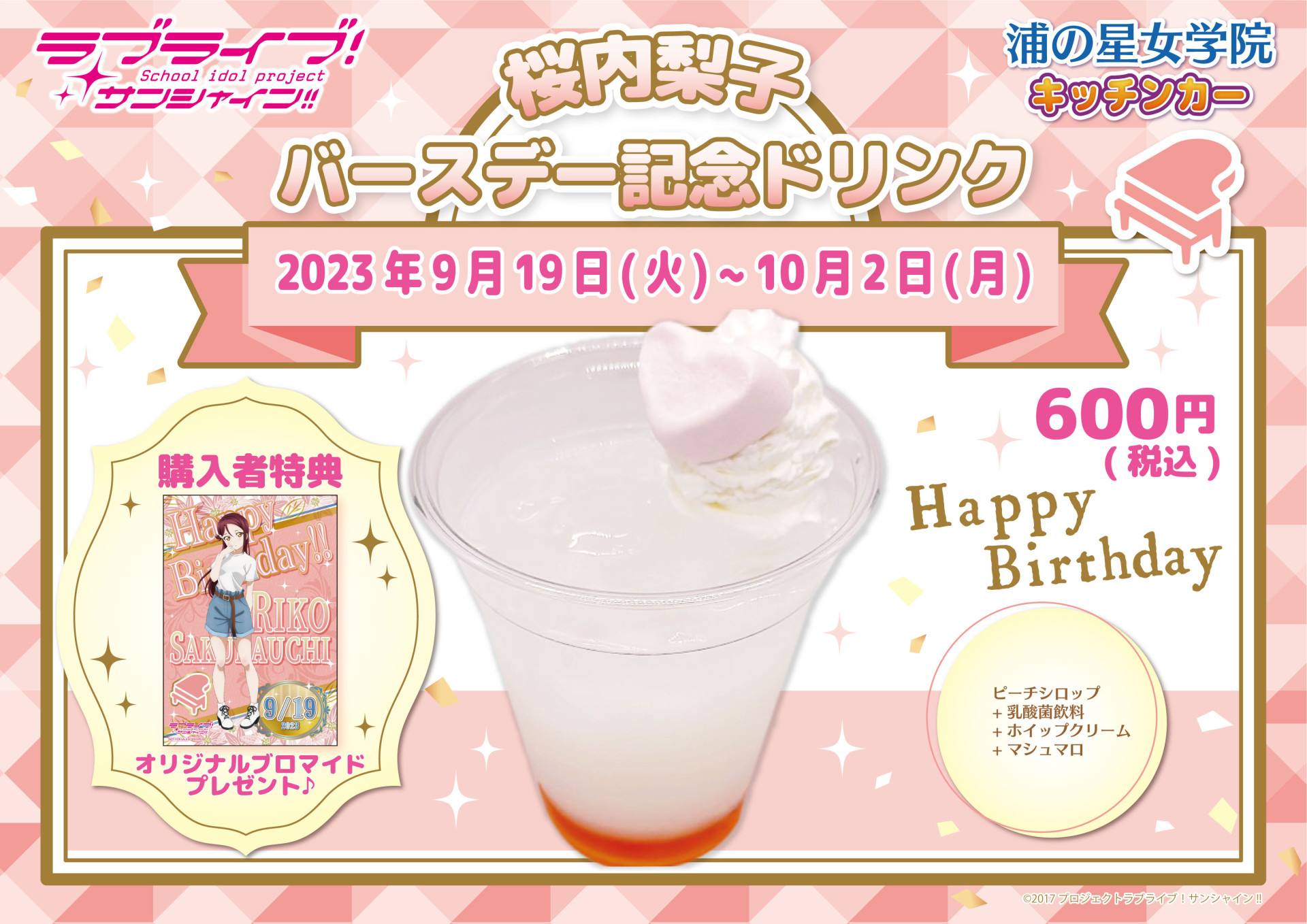 浦の星女学院キッチンカーよりバースデー記念ドリンク販売のお知らせ