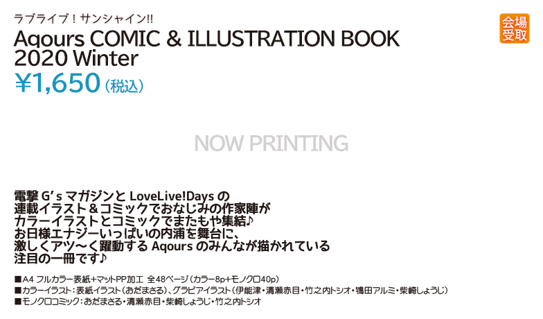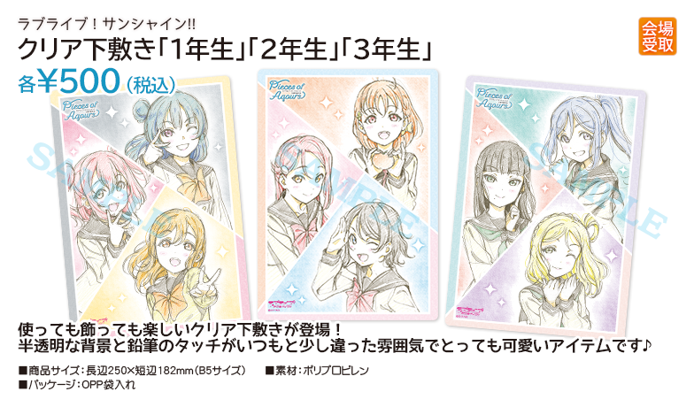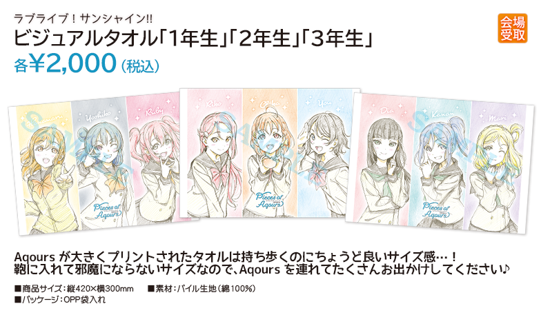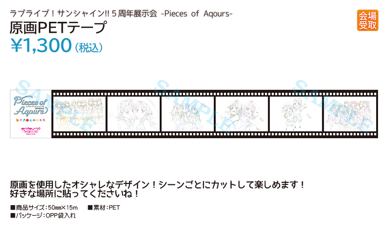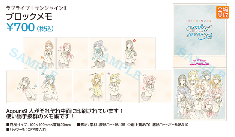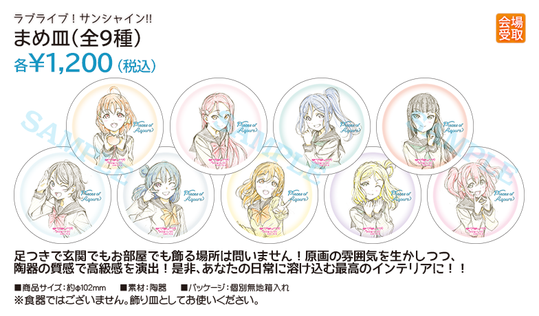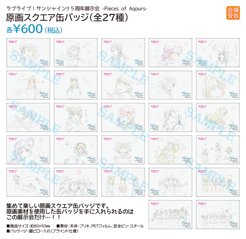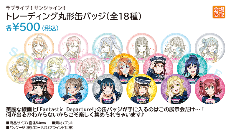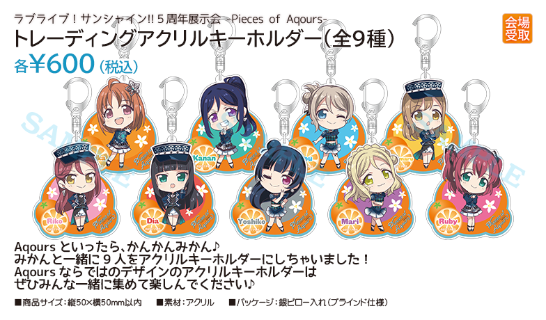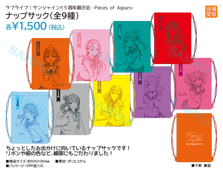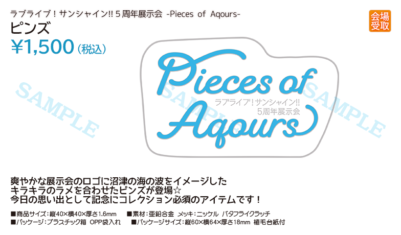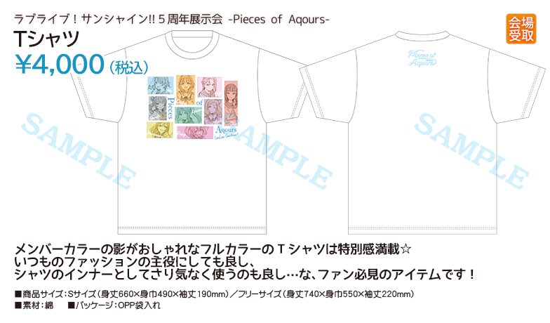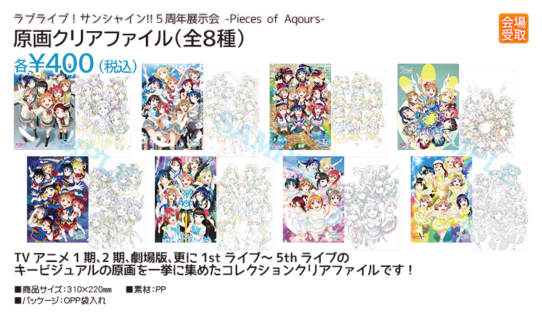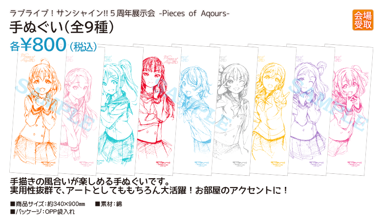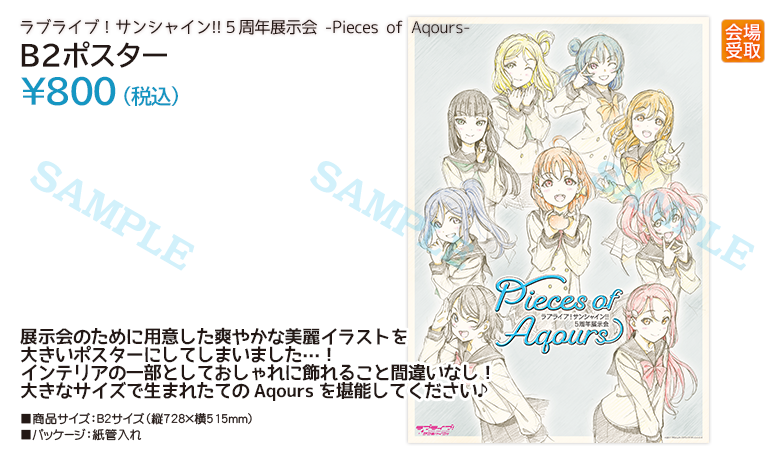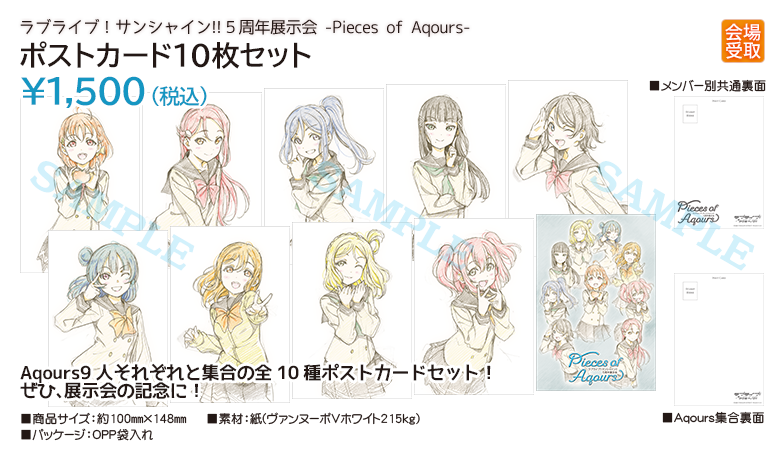 ラブライブ!サンシャイン!! 5周年展示会-Pieces of Aqours- [ グッズ情報 ] <横浜会場>情報はこちら ラブライブ!サンシャイン!! 5周年展示会-Pieces of Aqours- <沼津会場> 沼津会場TOP チケット情報 入場特典 グッズ情報 音声ガイド 函館出張版 ご来場に際してのお願い バンダイナムコアーツ KADOKAWA アスキー・メディアワークス ラブライブ!School idol STORE